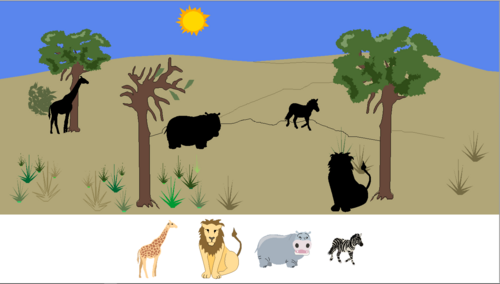 Trening på å holde venstre musetast nede og dra en figur på plass. Oppgavene er mange. Plasser dyra, fargelegg ting i bildet, finn maken med flere.