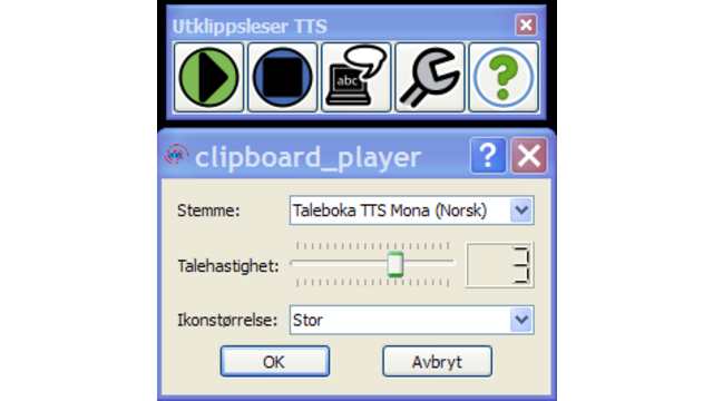 Den medfølgende Utklippsleseren er ment for de som ikke har noe program for opplesning på pc-en. Marker en tekst i et program eller på nett og lim inn for å lese den opp eller få den automatisk lest. Enklere kan det ikke bli: Start programmet du vil bruke talen i – hent inn tekster – og tal dem. Eller hør hva du vil i Utklippsleseren – et enkelt alternativt lesehjelpemiddel med mange muligheter!